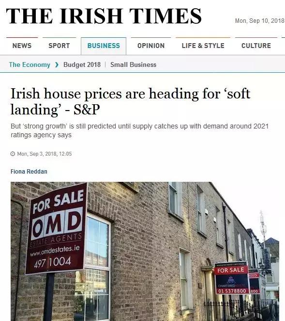 标准普尔全球评级公司发布的预测报告显示,目前,爱尔兰的房屋供应量正在追赶需求量,因而预计,未来三年内的房价增长将有所缓解。2018年的房价增速为9.5%,2019年放缓至8%,2020年为7%,2021年为6%。