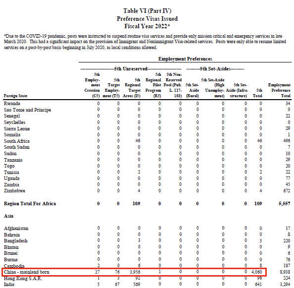 来源:https://travel.state.gov/content/dam/visas/Statistics/AnnualReports/FY2022AnnualReport/FY22_TableVI_PartIV.pdf