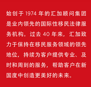 汇加顾问集团(VCG-Visas Consulting Group)是大型的国际性移民法律服务机构。集团加拿大总部律师行于1974年成立于蒙特利尔,集团美国律师行于1980年成立于旧金山,集团澳洲律师行于1984年成立于悉尼,集团新西兰律师行于1985年成立于基督城。过去40年来,我们业已代表上万名申请人成功办理移民申请手续,在业内享有盛誉。
